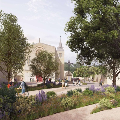 Program: The Villegailhenc town center renewal project is part of a resilience program for the area and the people of Villegailhenc. The composition of modular, extensively landscaped outdoor spaces and the co-construction method should help to anchor and appropriate the new town center.