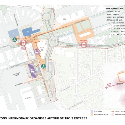 Programme : Le projet de création d’un pôle d’échange multimodal à Talence s’inscrit dans une dynamique de transformation urbaine à l’interface stratégique entre le centre-ville et le campus universitaire.